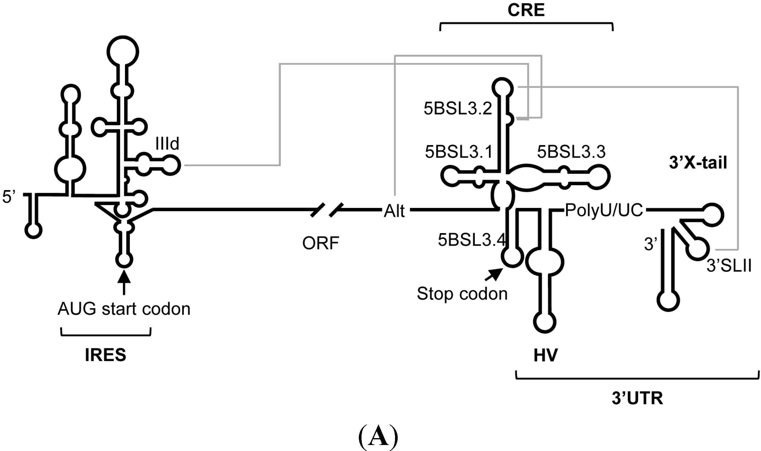 - Romero-López, C.; Berzal-Herranz, A. The functional RNA domain 5BSL3.2 within the NS5B coding sequence influences hepatitis C virus IRES-mediated translation. Cell. Mol. Life Sci. 2012, 69, 103–113. [Google Scholar] [CrossRef] [PubMed]