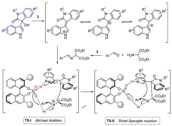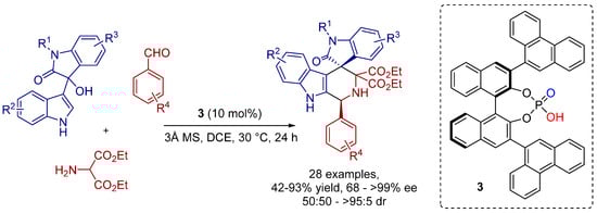 Since the pioneering studies of the groups of Akiyama [4] and Terada [5] in 2004 on the application of chiral BINOL-derived phosphoric acids as powerful Brønsted acid catalysts in different C-C bond formation reactions, the development of novel BINOL-phosphate catalyzed reactions has been continuously studied and resulted in great progress in recent years [6,7,8,9,10,11].