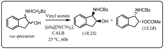 Resolution of cis-benzyl N-(1-hydroxyindan-2-yl)carbamate using CALB (Novozym 435®) in ionic liquid [].