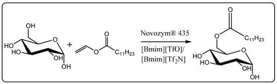 Transesterification of vinyl laurate with glucose in ionic liquids catalyzed by Novozym® 435 [].