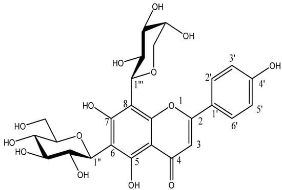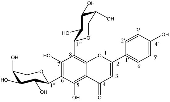 Structure of apigenin 6-C-β-d-glucopyranosyl-8-C-α-l-arabinopyranoside.