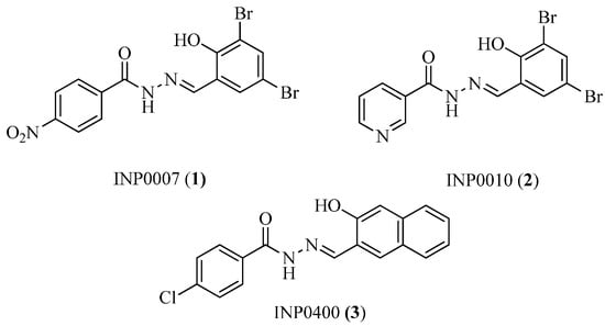Structures of INP0007 (1), INP0010 (2) and INP0400 (3).