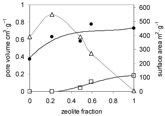 | Sample | Zeolite Mass Fraction | Surface Area (m2·g−1) | Micropore Volume (cm3·g−1) | Mesopore Volume (cm3·g−1) |