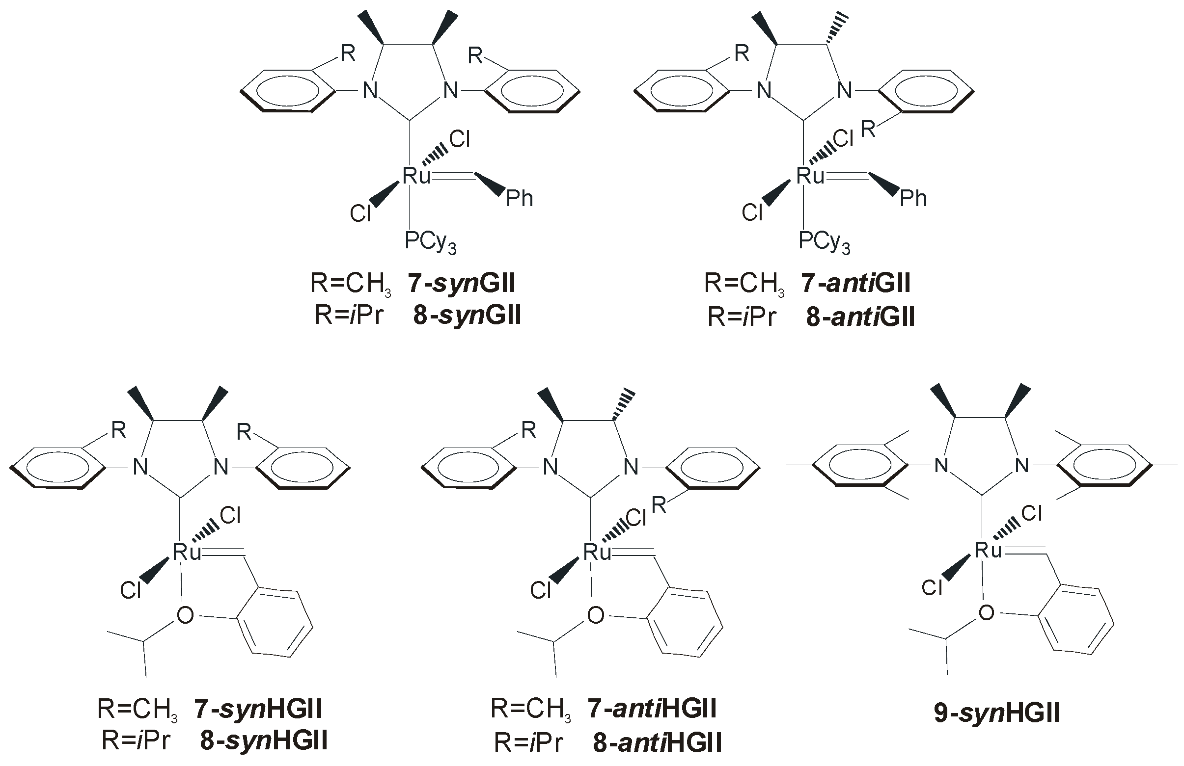 2. Ruthenium Catalysts Bearing Symmetrically N-Substituted NHCs with syn or anti Backbone Configurations