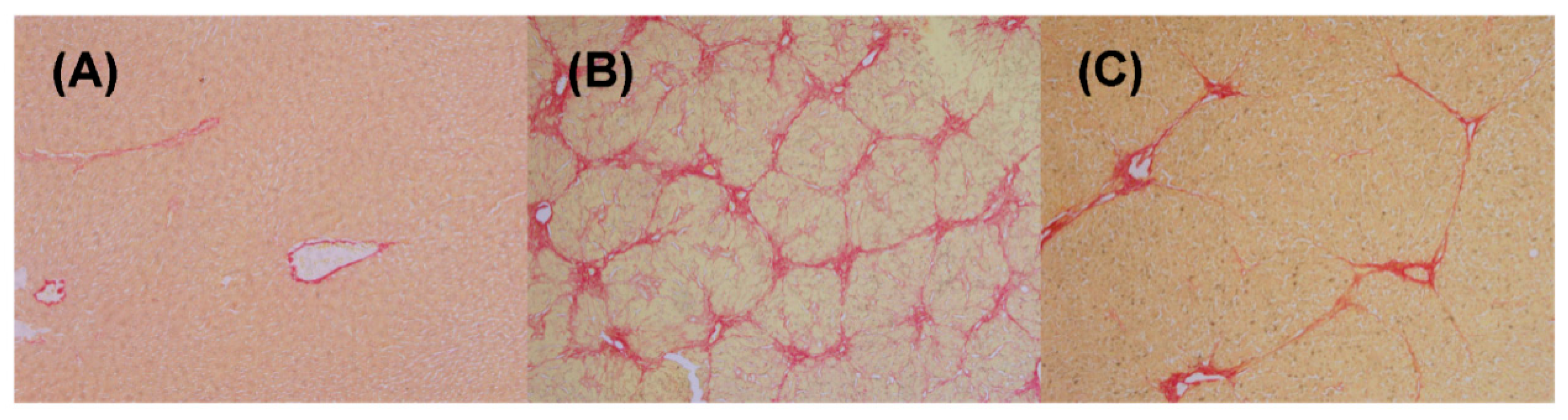 - Takahara, Y.; Takahashi, M.; Wagatsuma, H.; Yokoya, F.; Zhang, Q.W.; Yamaguchi, M.; Aburatani, H.; Kawada, N. Gene expression profiles of hepatic cell-type specific marker genes in progression of liver fibrosis. World J. Gastroenterol. 2006, 12, 6473–6499. [Google Scholar] [PubMed]