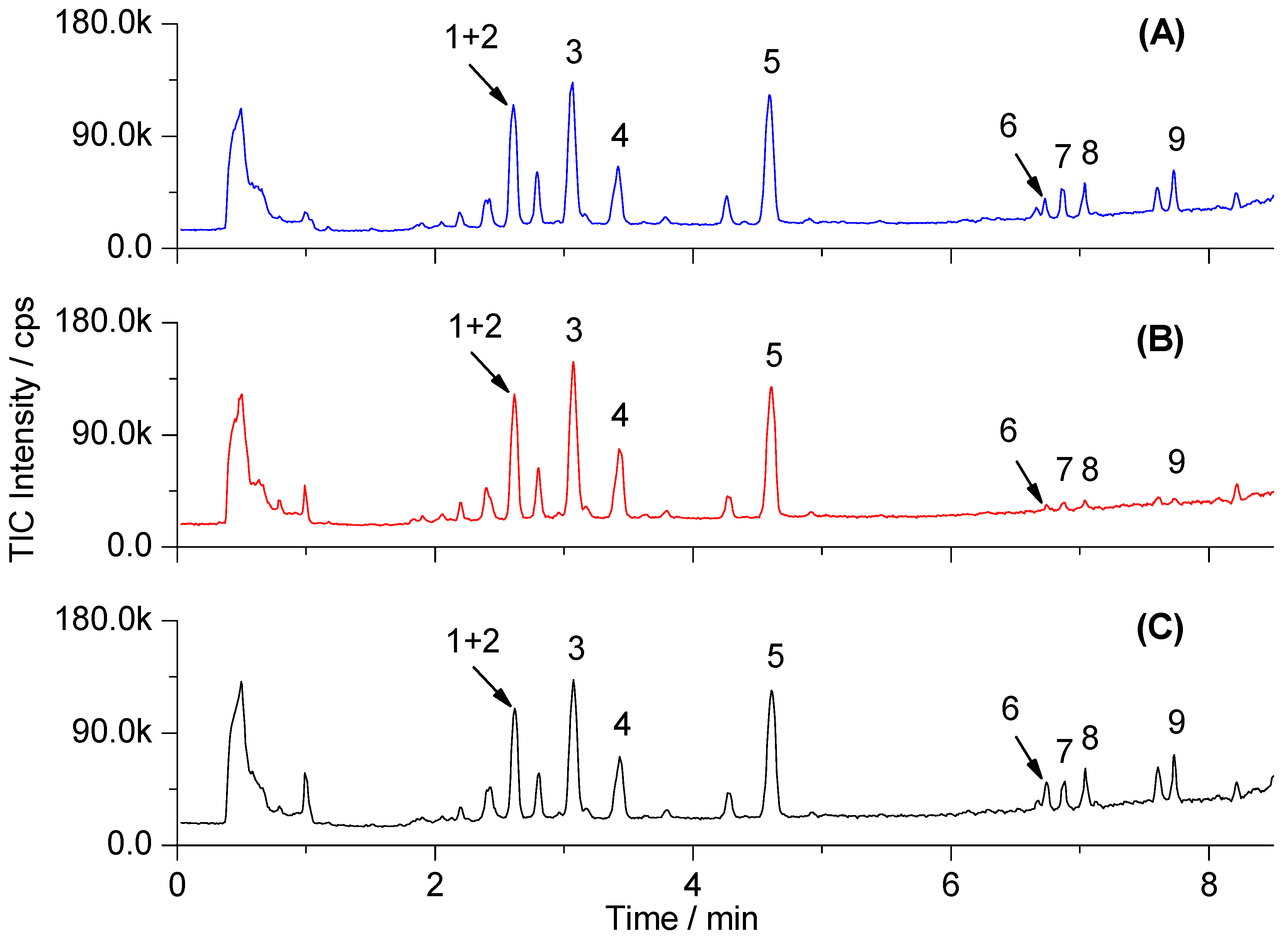 | Mean Peak Area | RSD (%) | Mean Peak Area | RSD (%) | ||