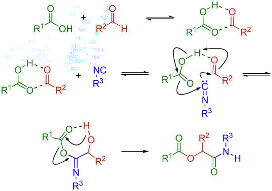 - Ugi, I.; Meyr, R.; Isonitrile, V. Erweiterter anwendungsbereich der passerini-reaktion. Chem. Ber. 1961, 94, 2229–2233. [Google Scholar] [CrossRef]