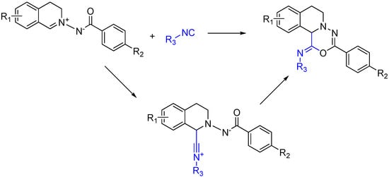 - Soeta, T.; Tamura, K.; Ukaji, Y. [5 + 1] cycloaddition of c,n-cyclic n′-acyl azomethine imines with isocyanides. Org. Lett. 2012, 14, 1226–1229. [Google Scholar] [CrossRef] [PubMed]