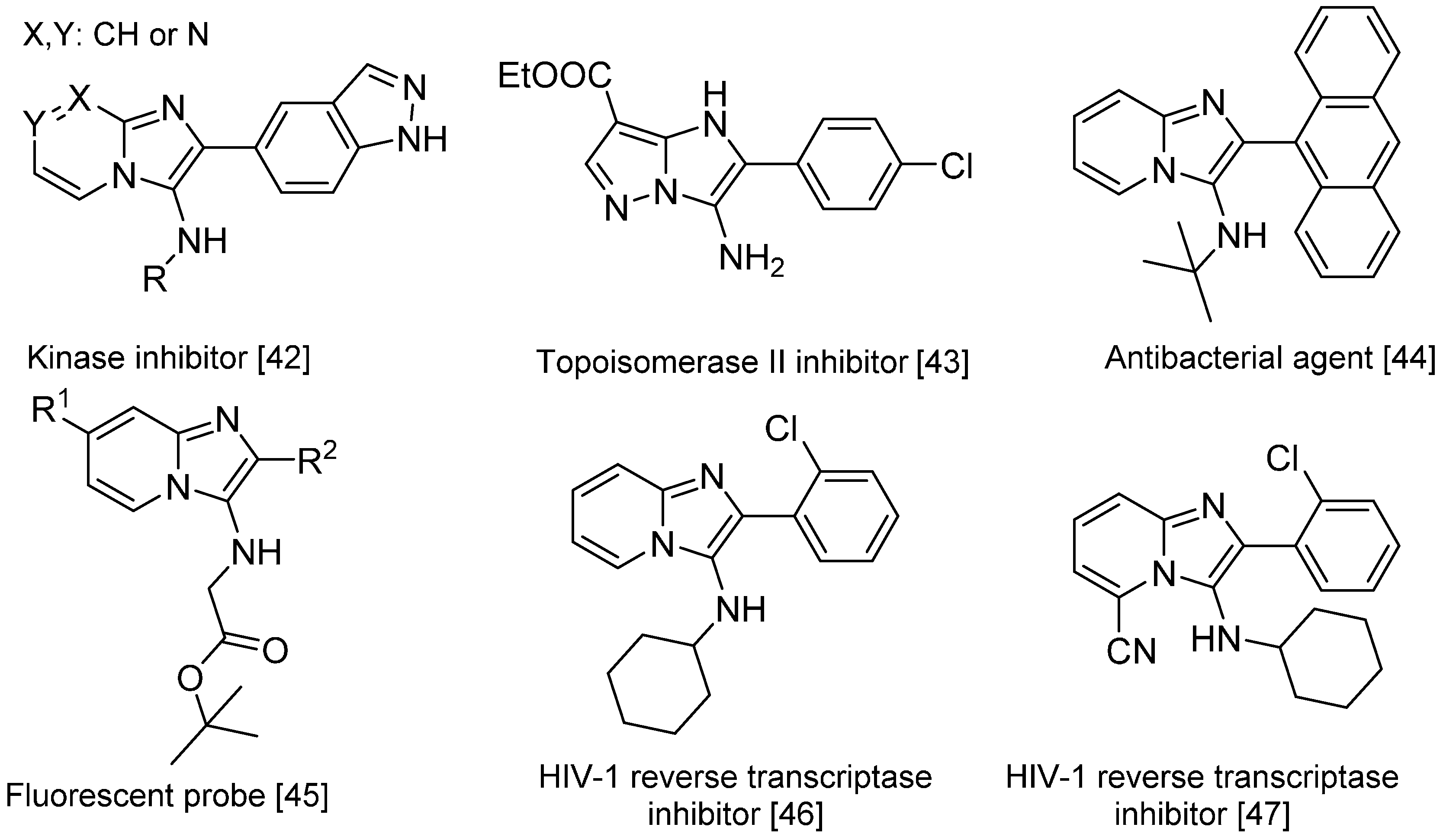 - Hulme, C.; Lee, Y.-S. Emerging approaches for the syntheses of bicyclic imidazo[1,2-x]-heterocycles. Mol. Divers. 2008, 12, 1–15. [Google Scholar] [CrossRef] [PubMed]