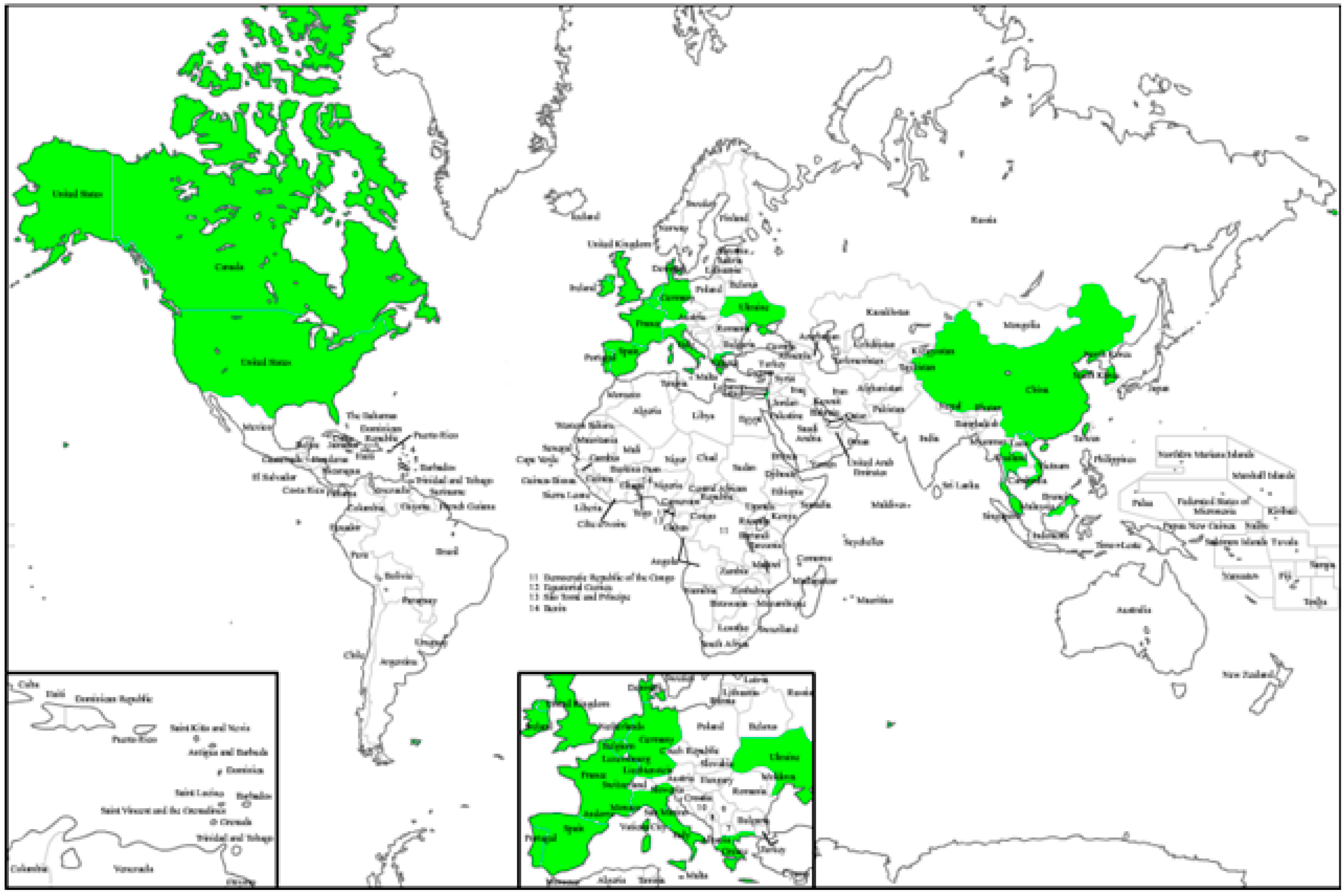 Regions of the world where it is possible to cultivate S. rebaudiana.