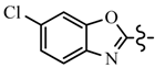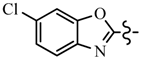 Compound 5a (1.5 mmol) and powdered potassium carbonate (2.25 mmol) were added into dimethylsulfoxide (20 mL). 2, 6-Dichlorobenzoxazole (1.5 mmol) was added to the solution and the mixture was stirred at room temperature for 3 h. The mixture was diluted with water (20 mL) and extracted with diethyl ether (30 mL × 2). The extract was washed with water and saturated brine, dried over anhydrous sodium sulfate, the filtrate was concentrated in vacuo. The residue was further purified by silica gel column chromatography (ethyl acetate/petroleum ether: 1/10 as the eluent) to give compound 6a as a white solid. Compounds 6b–i were synthesized using the same procedures.
