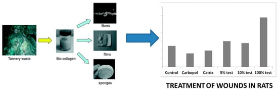 More recently, the company Green Applied Solution Ltd. based in Spain (created with IP from our group) has been interested in developing various projects related to the use of biomass/waste types of feedstocks including collagenic-like biopolymers for the design of biocompatible nanocomposites. The extraction, isolation, and applications of biocollagen from slaughterhouse residues, as well as leather waste and useful materials, was previously explored by the group [
