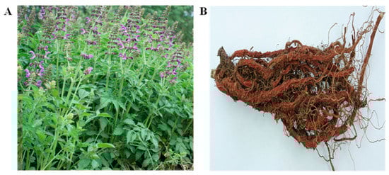 Nowadays, traditional Chinese medicines (TCMs) have been recognized as typical representatives of complementary, alternative medicines, which are attracting increasing worldwide attention []. Radix Salviae miltiorrhizae et Rhizoma (named Danshen in China), the roots and rhizomes of Salvia miltiorrhiza Bunge (Figure 1), is one of the well-known TCMs. It has been used for more than a millennium in Asian countries, especially in China, Japan and Korea, and was firstly cited in Shenlong Bencao Jing (200–300 AD, Han Dynasty) [,]. The consumption of Danshen in the world exceeds 20 million kilograms per year. In clinical practice, Danshen has been developed into more than thirty pharmaceutical dosage forms for the therapy of cardiovascular disease [], hepatic injury, pneumonia, chronic nephritis and arthrophlogosis. Among those various preparations, the Fufang Danshen Dripping Pill used for coronary heart disease and angina is the most promising compound Chinese medicine, whose phase III clinical study will be completed in 2016 [].