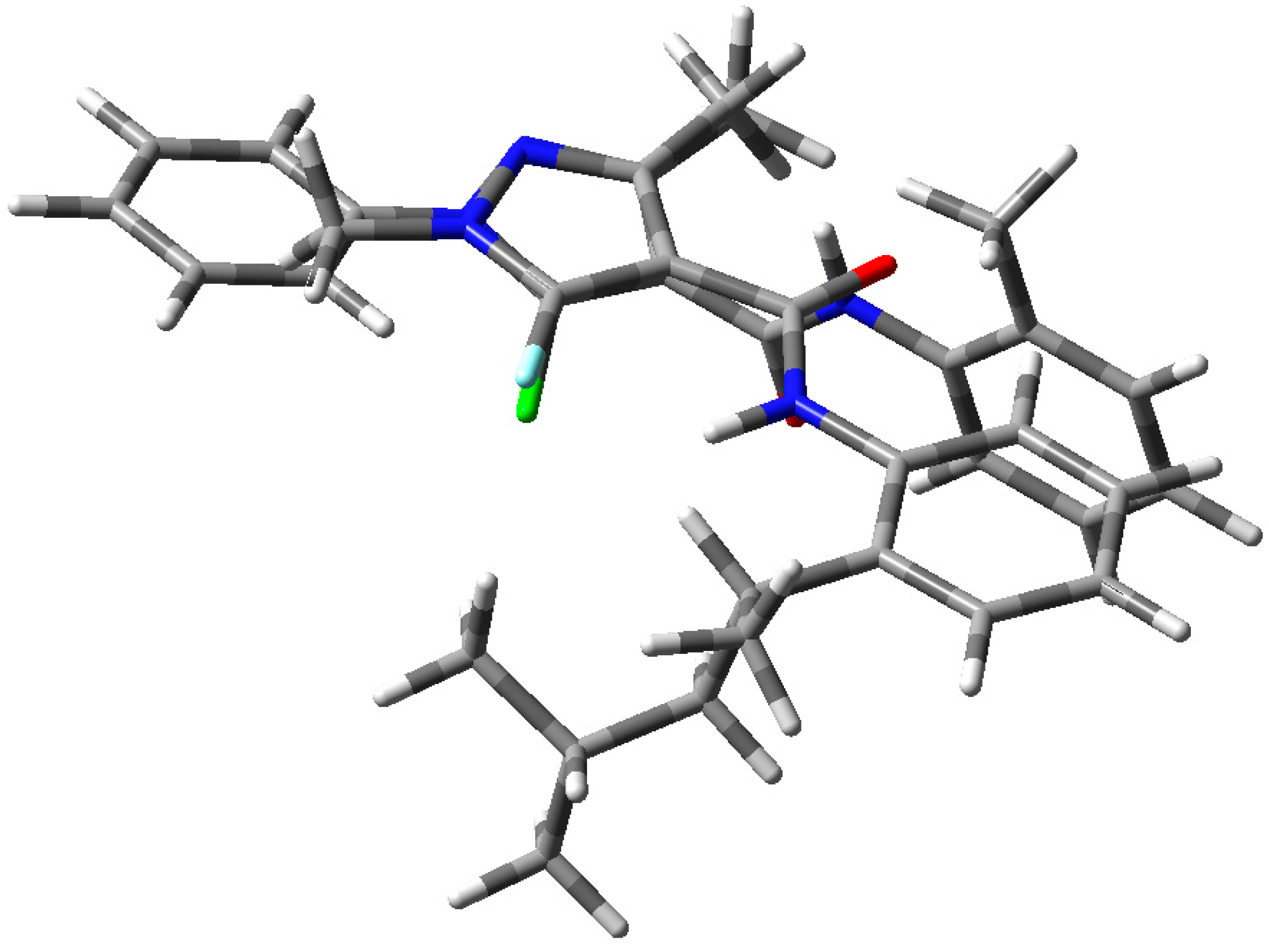 The structural difference is also an important issue. For example, the amide group orientation between the two compounds is opposite (Figure 3). We therefore speculate that this is the confirmation required between the phenyl ring and pyrazole ring when they bind to the target receptor.