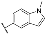 (Z)-4-(1-(4-(2-(Dimethylamino)ethoxy)phenyl)-5-hydroxy-2-(1-methyl-1H-indol-6-yl)pent-1-en-1-yl)phenol (15h). (3 mg, 6% yield). 1H-NMR (400 MHz, CD3OD) δ 7.33 (d, J = 1.0 Hz, 1H), 7.19 (d, J = 8.5 Hz, 2H), 7.14 (d, J = 8.5 Hz, 1H), 7.05 (d, J = 3.1 Hz, 1H), 7.01 (d, J = 8.7 Hz, 2H), 6.91 (dd, J = 8.5, 1.5 Hz, 1H), 6.65 (d, J = 8.7 Hz, 2H), 6.34 (d, J = 8.7 Hz, 2H), 6.28 (d, J = 3.0 Hz, 1H), 4.36 (t, J = 5.0 Hz, 2H), 3.7 (s, 3H), 3.58 (t, J = 5.0 Hz, 2H), 3.38 (t, J = 6.8 Hz, 2H), 2.97 (s, 6H), 2.51 (m, 2H), 1.55 (m, 2H). MS m/z (ESI) 471.3 (M + 1)+ (calcd for C30H34N2O3H+ 471.61).