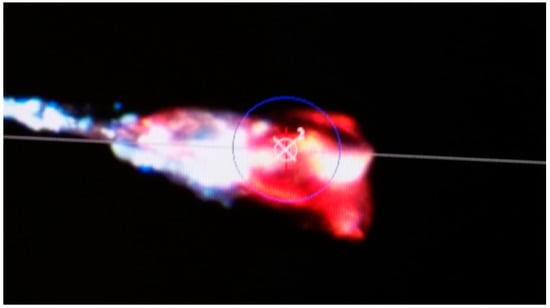 The fluorescence properties of B9P in its free form and upon binding to avidin were investigated and described earlier [19]. Shortly, free B9P excited at 355 nm displayed fluorescence emission in aqueous solutions at λmax = 461 nm. The fluorescence maximum was shifted to 425 nm upon the binding of B9P to avidin. Formation of the avidin/B9P complex was also evidenced by quenching of the fluorescence from the protein tryptophan residues (342 nm) and the appearance of the emission band of the avidin/B9P at 430 nm as a result of a Förster resonance energy transfer (FRET) phenomenon [19]. Interestingly, we found that the crystal of avidin/B9P complex exhibited pink fluorescence upon excitation by a strong synchrotron X-ray beam during diffraction data collection (Figure 3).