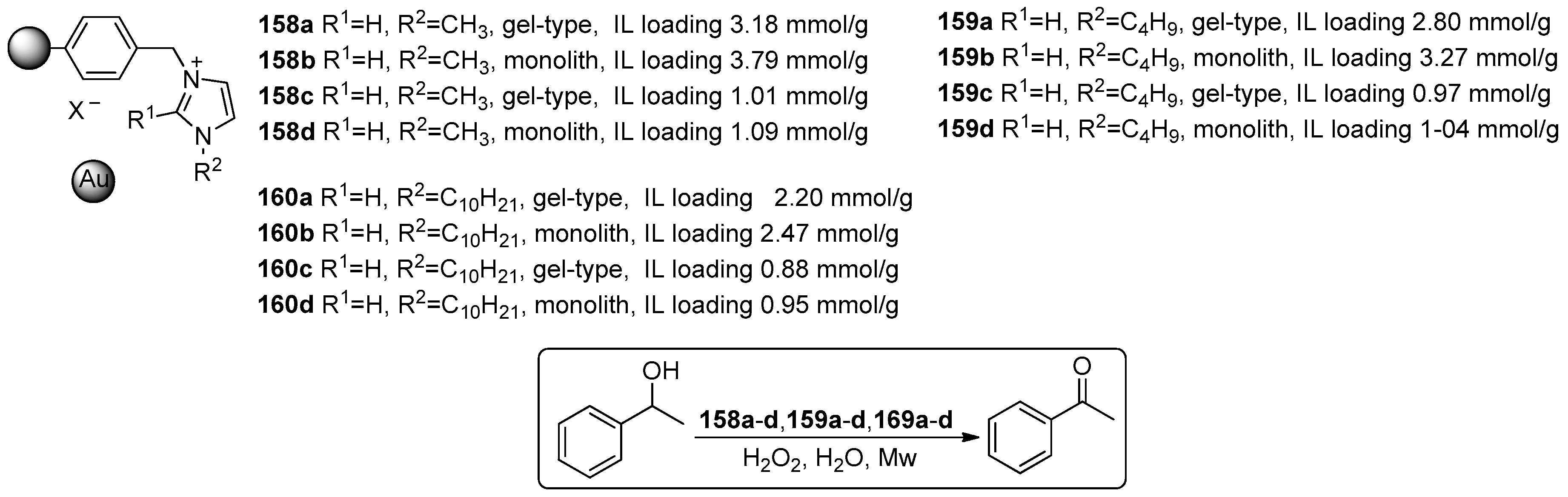 - Restrepo, J.; Lozano, P.; Burguete, M.I.; García-Verdugo, E.; Luis, S.V. Gold nanoparticles immobilized onto supported ionic liquid-like phases for microwave phenylethanol oxidation in water. Catal. Today 2015, 255, 97–101. [Google Scholar] [CrossRef]