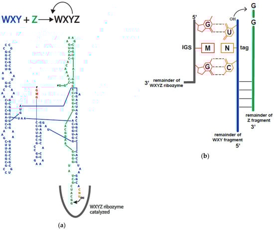 - Riley, C.A.; Lehman, N. Generalized RNA-directed recombination of RNA. Chem. Biol. 2003, 10, 1233–1243. [Google Scholar] [CrossRef] [PubMed]