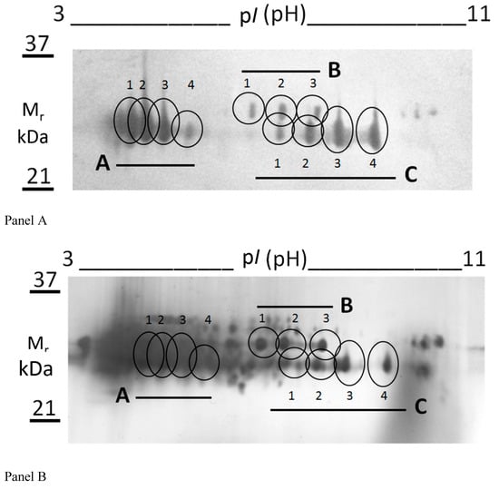 | Spot | UniProtKB/NCBI Accession | Protein Description | MASCOT Score | Theor. Mass (kDa) | Theor. pI | Matched Peptides | Unique Peptides | Protein Coverage (%) |