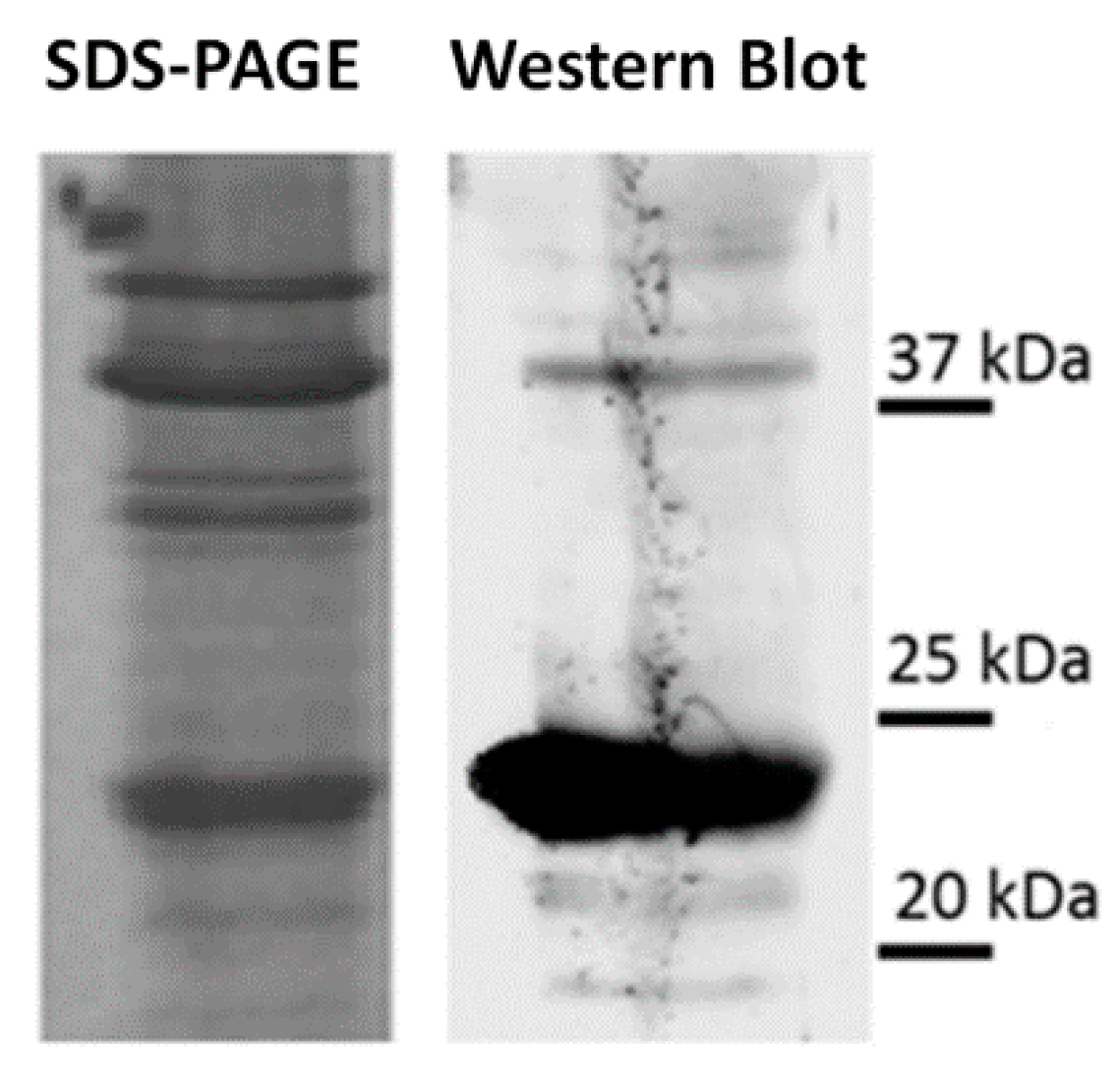 4.3. SDS-PAGE and Subsequent Protein Extraction from Polyacrylamide Gel
