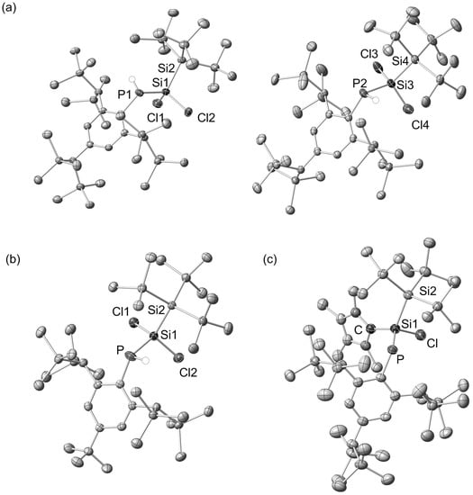 - Driess, M.; Block, S.; Brym, M.; Gamer, M.T. Synthesis of a “half”-parent phosphasilene R2Si=PH and its metalation to the corresponding P-zinciophosphasilene [R2Si=PM]. Angew. Chem. Int. Ed. 2006, 45, 2293–2296. [Google Scholar] [CrossRef] [PubMed]