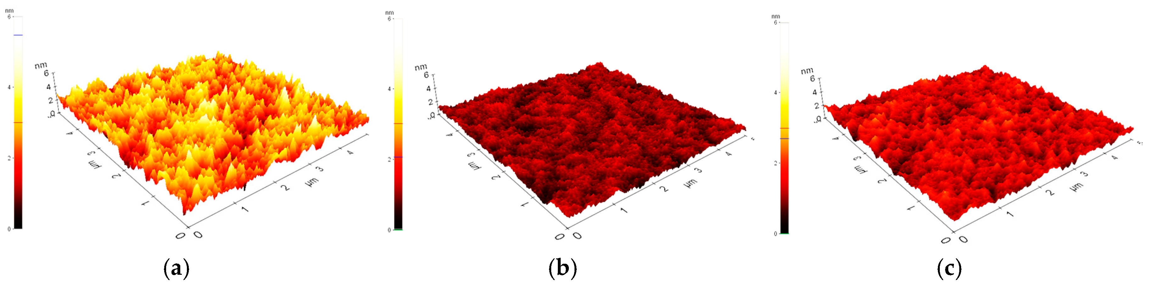 5 × 5 μm AFM images of ITO/PEDOT:PSS (a); ITO/PEDOT:PSS/SimCP3 (b); and ITO/PEDOT:PSS/SimCP3:FIrpic (10 wt %) (c).