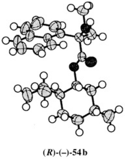X-ray ORTEP drawings of camphorsultam amides (R)-(−)-10a and (S)-(−)-10b. Reprinted with permission from [23].