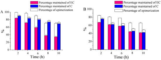 - Suzuki, M.; Sano, M.; Yoshida, R.; Degawa, M.; Miyase, T.; Maeda-Yamamoto, M. Epimerization of tea catechins and O-methylated derivatives of (−)-epigallocatechin-3-O-gallate: Relationship between epimerization and chemical structure. J. Agric. Food Chem. 2003, 51, 510–514. [Google Scholar] [CrossRef] [PubMed]