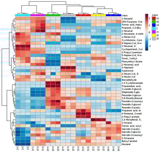2.5. Multivariate Statistical Analysis of Anthocyanins and Volatile Aromas