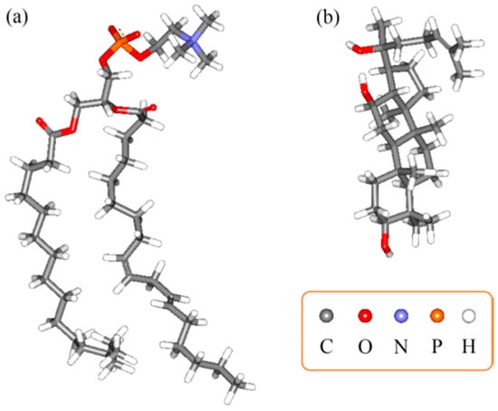 Initial molecular structures in the calculation. (a) Phospholipid; (b) PPD.