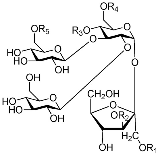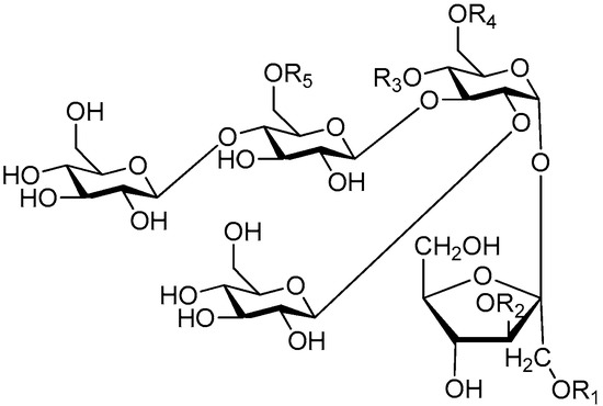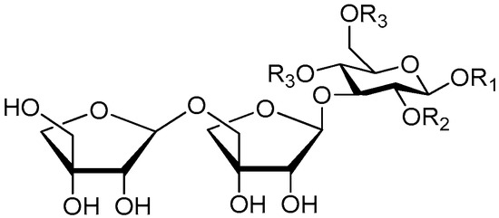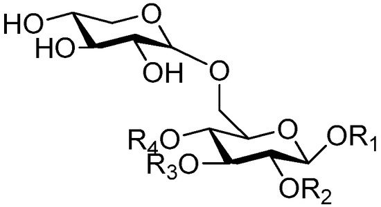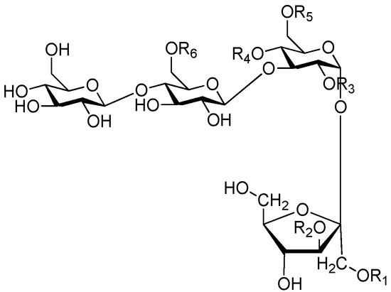 - Yoshinari, K.; Sashida, Y.; Mimaki, Y.; Shimomura, H. New polyacylated sucrose derivatives from the bark of Prunus padus. Chem. Pharm. Bull. 1990, 38, 415–417. [Google Scholar] [CrossRef]