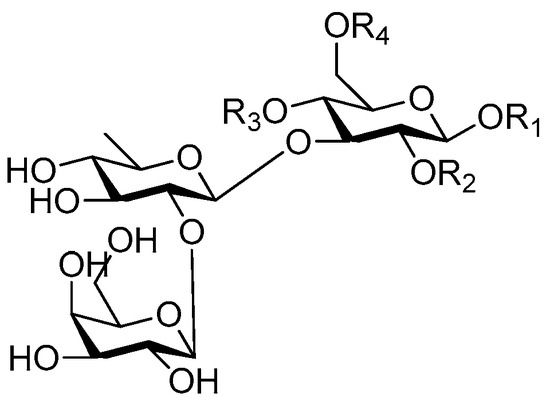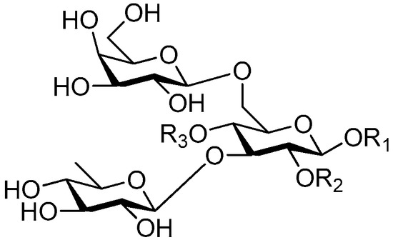 - Saitoh, H.; Miyase, T.; Ueno, A.; Atarashi, K.; Saiki, Y. Senegoses J-O, oligosaccharide multi-esters from the roots of Polygala senega L. Chem. Pharm. Bull. 1994, 42, 641–645. [Google Scholar] [CrossRef] [PubMed]