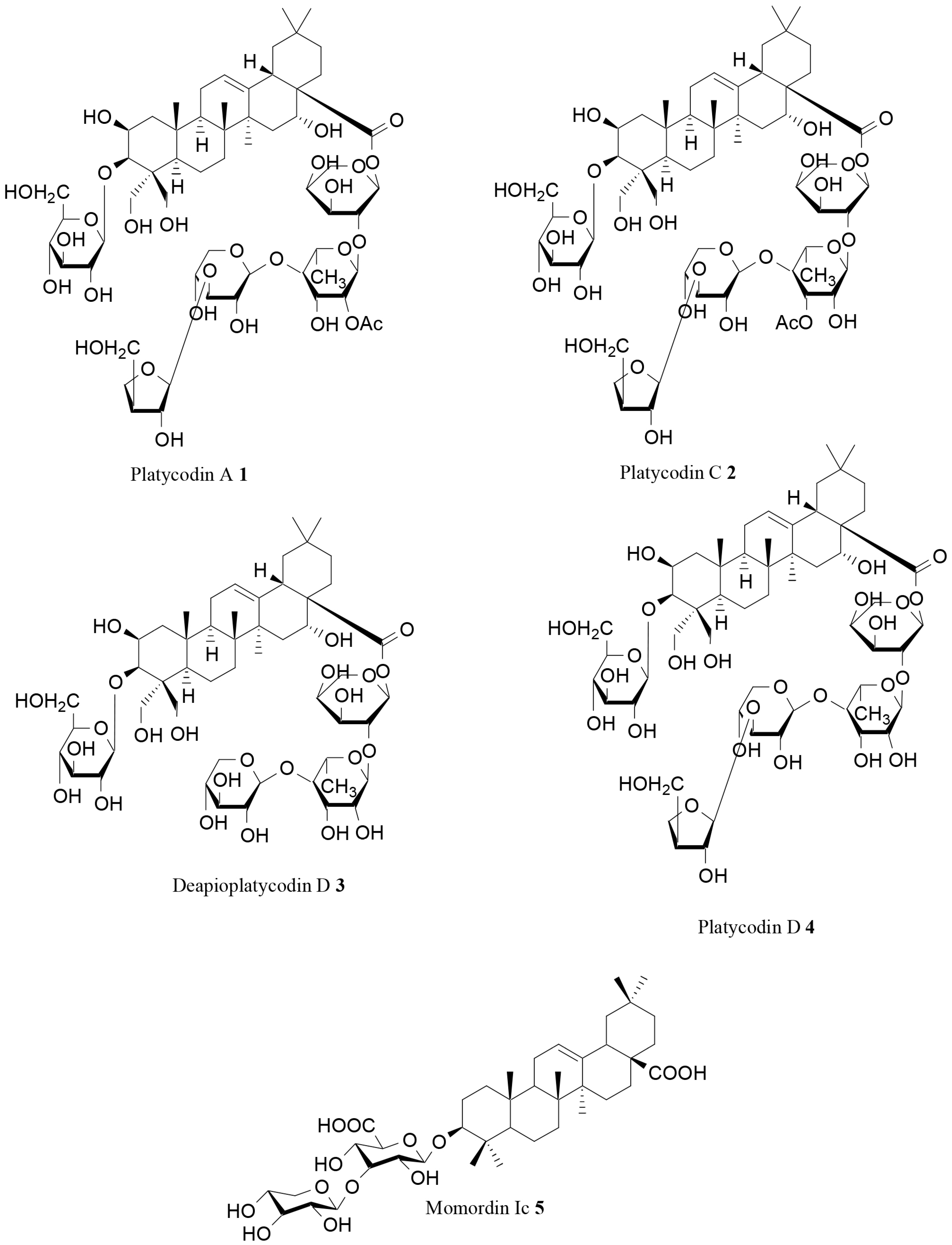 - Xu, B.J.; Han, L.K.; Zheng, Y.N.; Lee, J.H.; Sung, C.K. In vitro inhibitory effect of triterpenoidal saponins from Platycodi Radix on pancreatic lipase. Arch. Pharm. Res. 2005, 28, 180–185. [Google Scholar] [CrossRef] [PubMed]