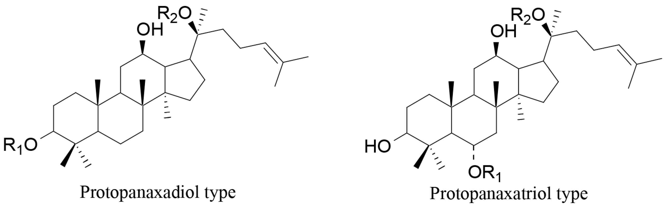 - Kim, J.H.; Kang, S.A.; Han, S.M.; Shim, I. Comparison of the antiobesity effects of the protopanaxadiol- and protopanaxatriol-type saponins of red ginseng. Phytother. Res. 2009, 23, 78–85. [Google Scholar] [CrossRef] [PubMed]