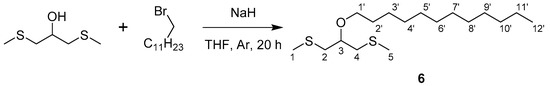 3.2. Synthesis of 1,3-Bis(methylthio)-2-dodecyloxypropane—Compound 6
