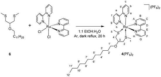 Synthesis of 4(PF6)2 from compound 6 and cis-Λ/Δ-[Ru(bpy)2Cl2].
