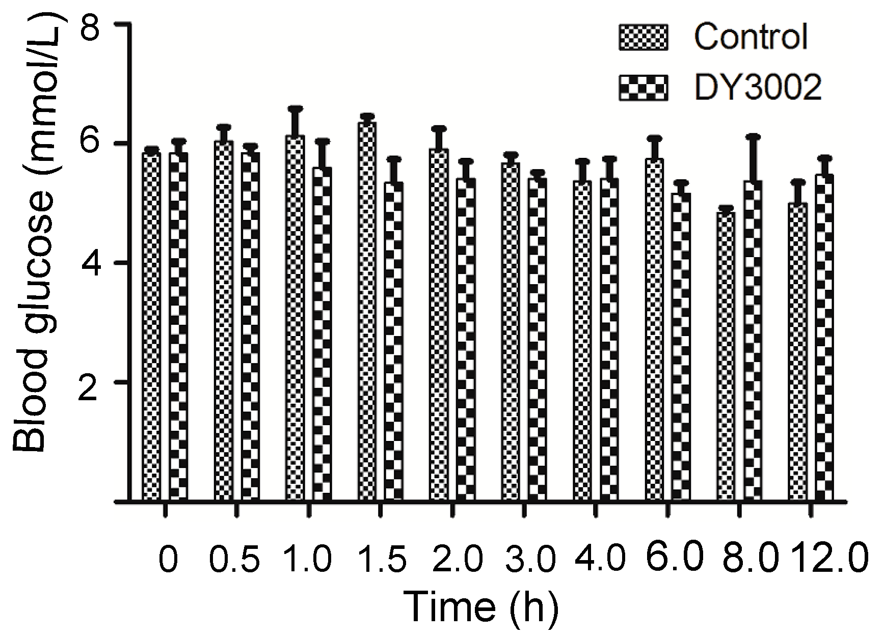 The effects of DY3002 on the blood glucose concentration in a rat model.