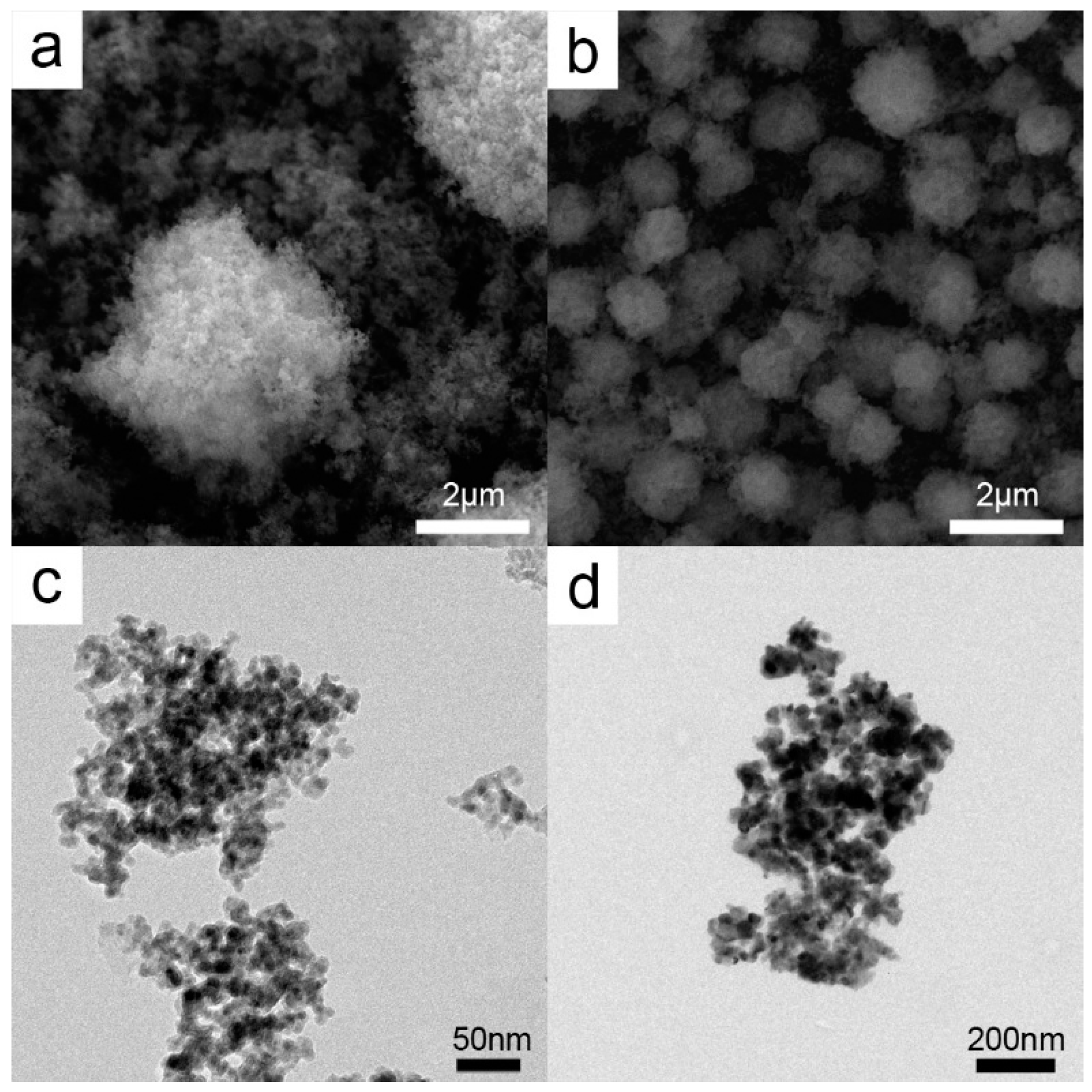 FeCl3·6H2O (1.4 g), trisodium citrate (0.33 g), and sodium acetate (1.9 g) were dissolved in an ethylene glycol/ethanol (36 mL/4.0 mL) mixture under stirring for 5 min. The resultant mixture was then transferred to a Teflon-lined stainless-steel autoclave (with a capacity of 40 mL) and heated at 200 °C for 10 h. The autoclave was then carefully taken out to cool to room temperature. The as-prepared products were washed with ethanol and deionized water and vacuum-dried.