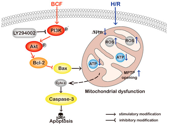 Accordingly, the aim of the present research was to explore whether BCF could attenuate H/R-induced cardiomyocytes apoptosis and mitochondrial dysfunction and to further determine the role of the PI3K/Akt pathway in BCF-induced cardioprotection on H/R.