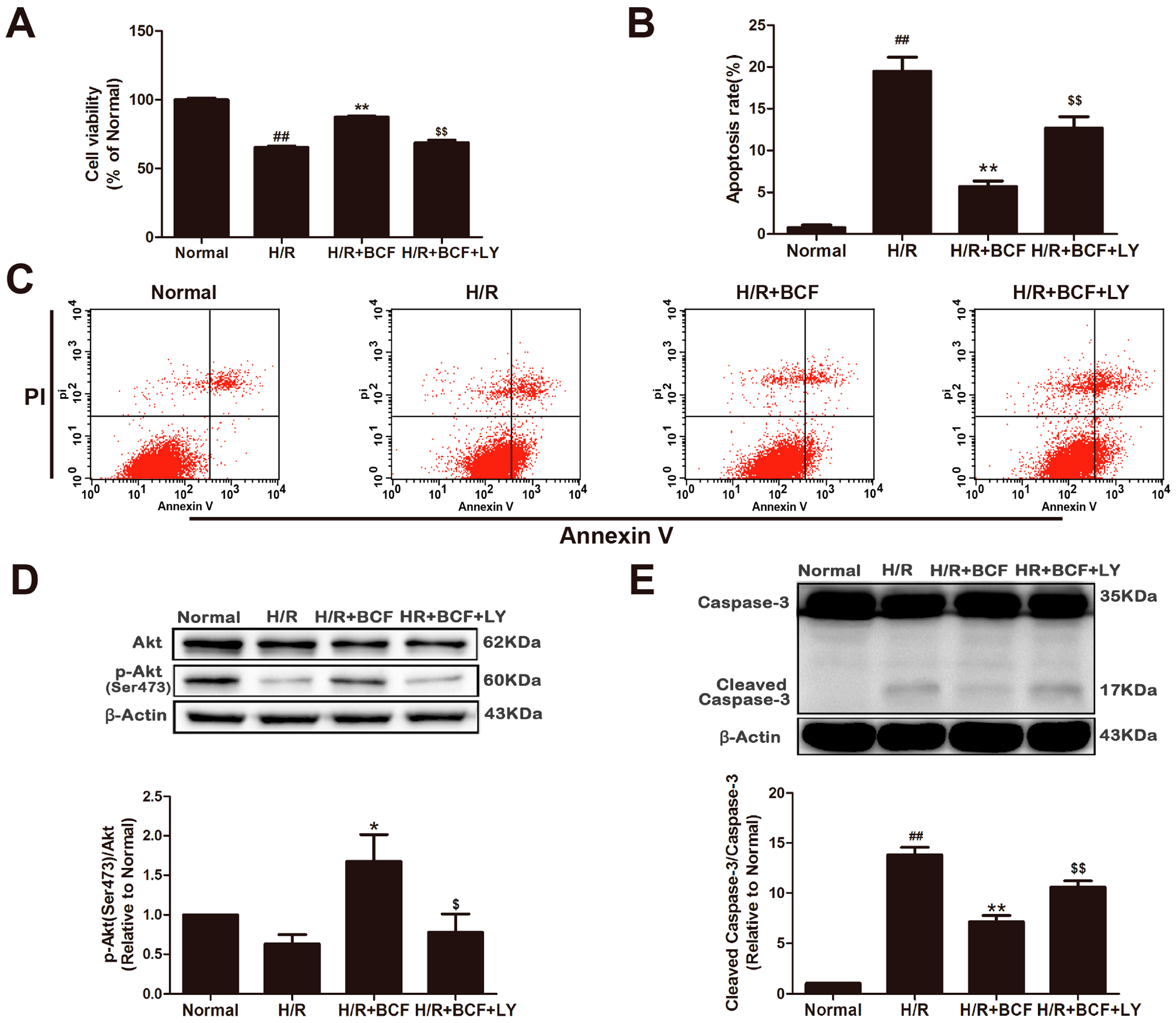 2.1. BCF Mitigated H/R Induced Apoptosis