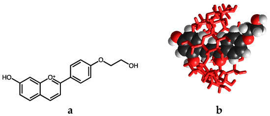 - Basílio, N.; Fernandes, A.; de Freitas, V.; Gago, S.; Pina, F. Effect of β-cyclodextrin on the chemistry of 3′,4′,7-trihydroxyflavylium. New J. Chem. 2013, 37. [Google Scholar] [CrossRef]