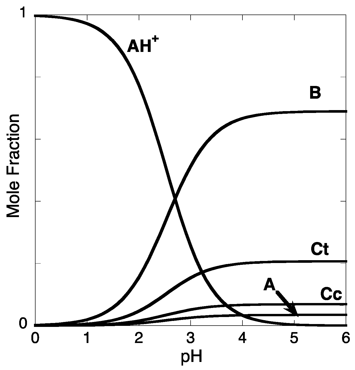 From Equation (B10), the mole fraction of AH+ is obtained