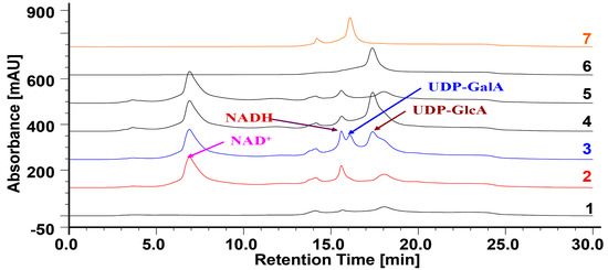 UDP-d-GalA was from CarboSource Services (University of Georgia, Athens, GA, USA). UDP-d-GlcA, NAD+ and NADH were obtained from Sigma-Aldrich Co. LLC (St. Louis, MO, USA). All other chemicals used in this study were of analytical grade.