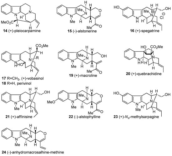 - Nordman, C.; Kumra, S. The structure of villalstonine1. J. Am. Chem. Soc. 1965, 87, 2059–2060. [Google Scholar] [CrossRef]