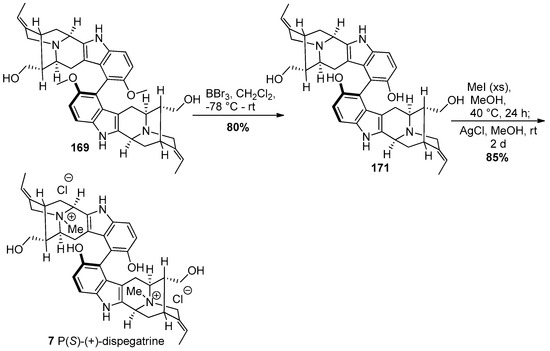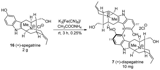 - Edwankar, C.R.; Edwankar, R.V.; Deschamps, J.R.; Cook, J.M. Nature-inspired stereospecific total synthesis of P-(+)-dispegatrine and four other monomeric sarpagine indole alkaloids. Angew. Chem. Int. Ed. 2012, 51, 11762–11765. [Google Scholar] [CrossRef] [PubMed]