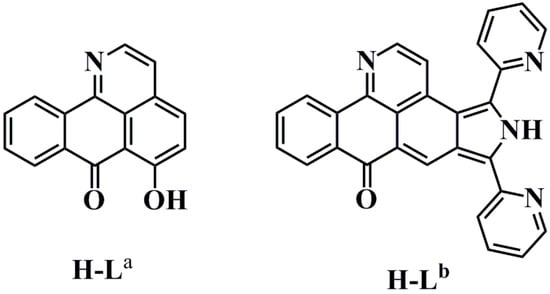 Chemical structure of oxoisoaporphine ligands H-La (6-hydroxyl-oxoisoaporphine) and H-Lb (6-di(2-pyridinyl)benzo[h]isoindolo[4,5,6-de]quinolin-8(5H)-one).