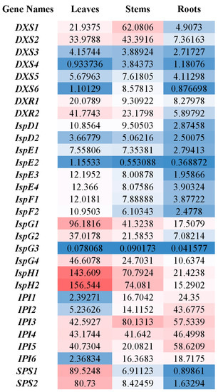 2.2. Organ-Specific Expression of Solanesol Biosynthesis Genes