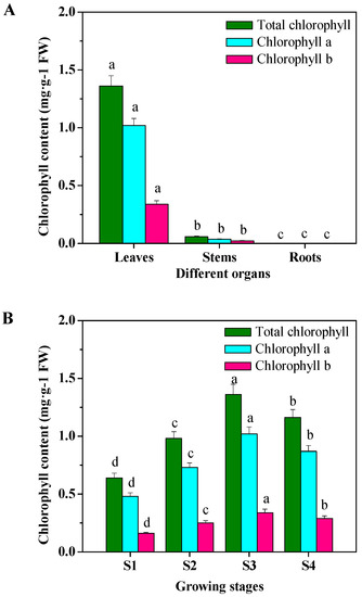 2.5. Organ- and Growing Stage-Specific Chlorophyll Content