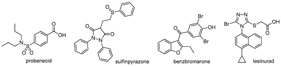 Structures of approved URAT1 inhibitors.