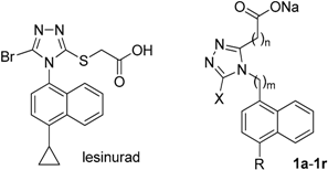 In vitro inhibitory activity of 1a–1r as well as lesinurad against human URAT1 (IC50).